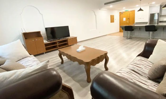 شقة فندقية في السنابس هذه الشقة المذهلة والمفروشة بالكامل والمكونة من غرفتي نوم هي مزيج نادر من التصميم والتخطيط الحديث والتقليدي. منطقة معيشة وطعام كبيرة، بالإضافة إلى غرف نوم جيدة الحجم مع خزائن مدمجة. مطبخ واسع مع خزائن مدمجة وأجهزة.
