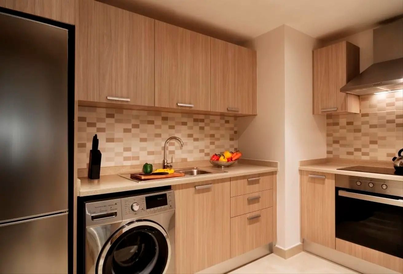 مطبخ مجهز بالكامل ومرافق غسيل الملابس (آلة الخبز المحمص، آلة صنع القهوة، الميكروويف، آلة طهي الأرز)
