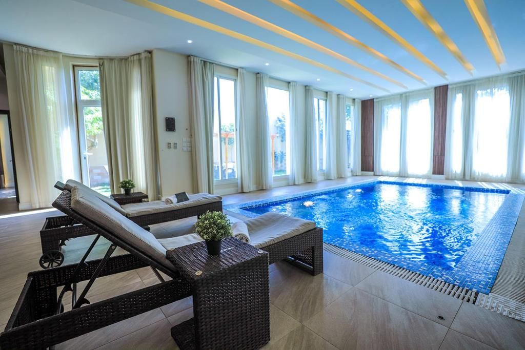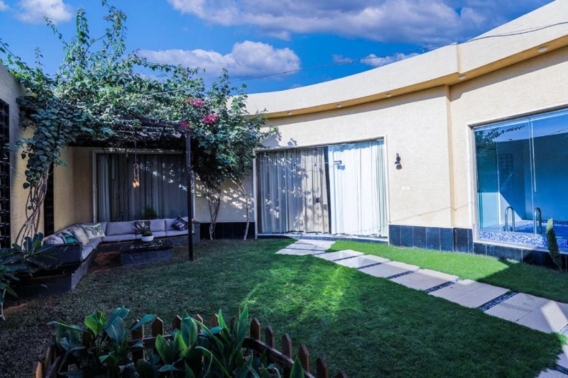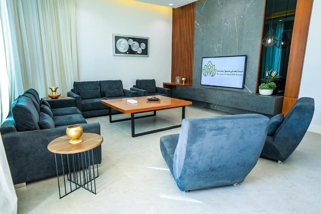 The resort has complete privacy and modernity in the design and the completely new luxurious furnishing, green spaces with various spaces that include various and modern outdoor sessions, where each villa has a bedroom with a private bathroom overlooking its own pool and garden, TV sessions, interior sessions with a sophisticated design, and a dining hall fully equipped with tools Dining with a large council, a toilet with its requirements, various swimming pools, and wide green spaces. Argan Park Resort 1 is one of the finest resorts in Riyadh.